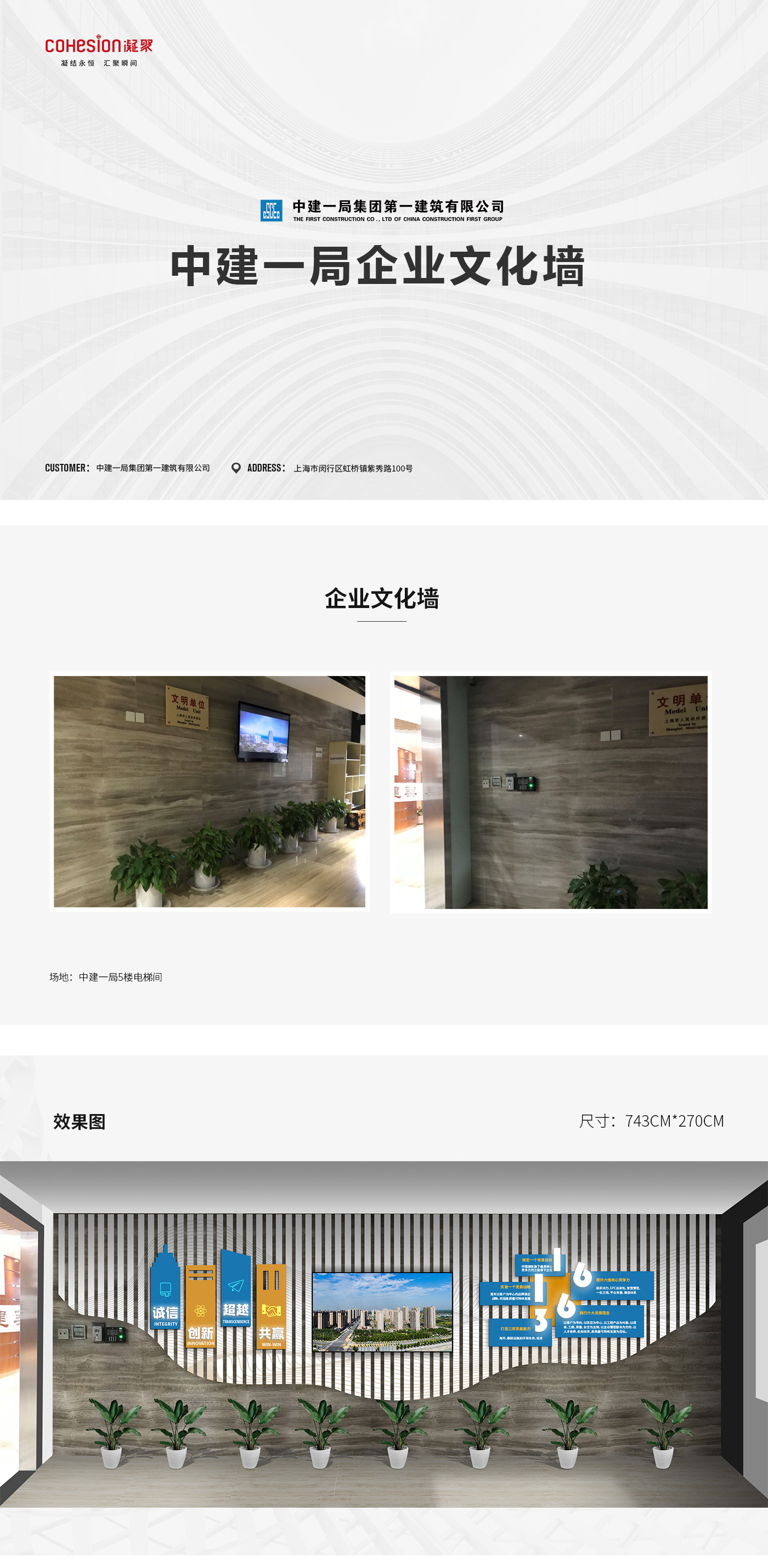 中国建筑一局集团,隶属于中国建筑工程总公司,此次文化墙设计为中建一局集团总部办公室文化背景墙,位于上海市闵行区紫秀路