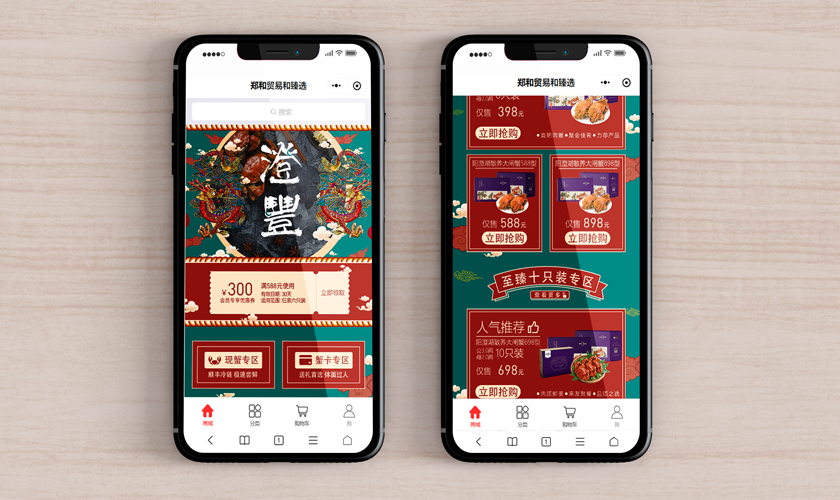 郑和贸易和臻选小程序,是以销售阳澄湖大闸蟹为主的商场小程序